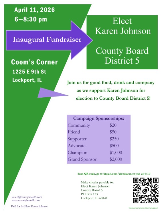 Elect Karen Johnson for Will County Board District 5 – Inaugural Fundraiser