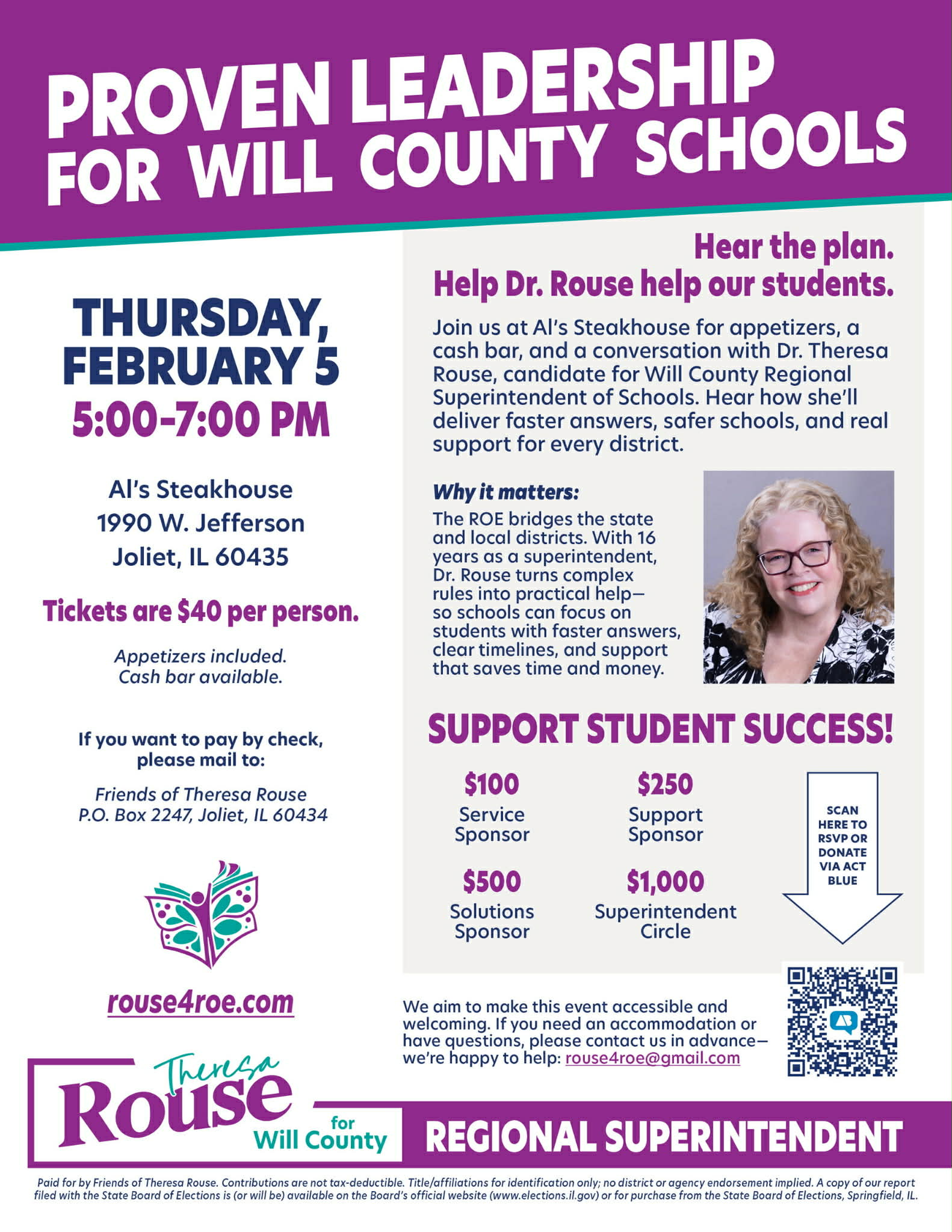 Fundraiser for Theresa Rouse for Will County Regional Superintendent