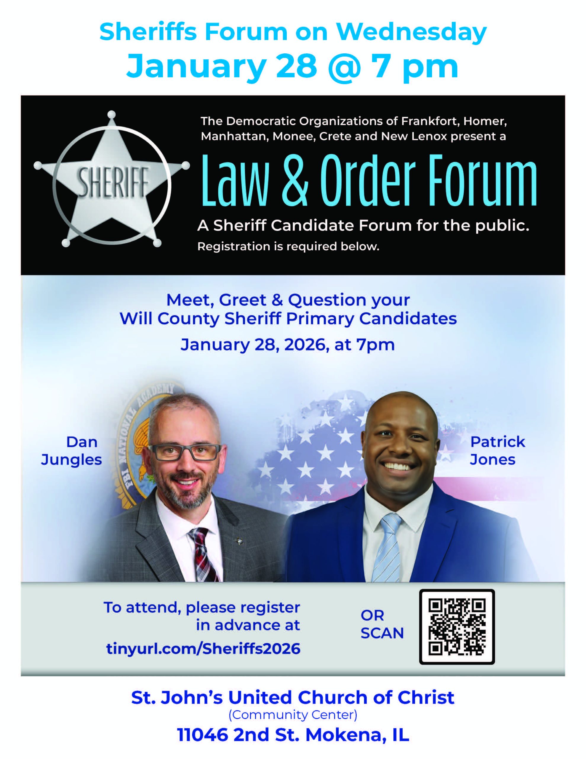 A Sheriff Candidates Forum brought to you by the Democratic Organizations of Frankfort, Homer, Manhattan, Monee, Crete & New Lenox. RSVP HERE