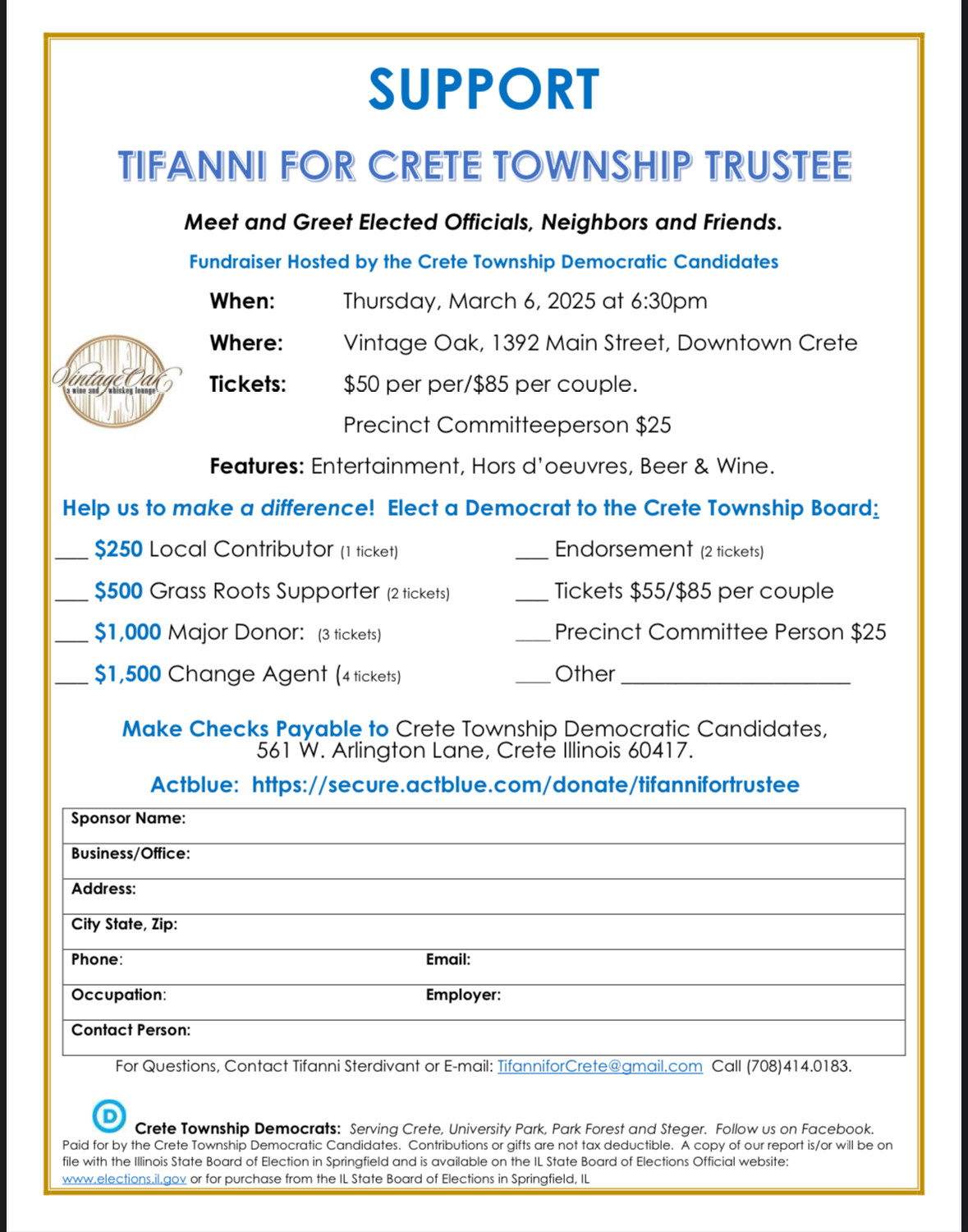 Tickets here: https://secure.actblue.com/donate/tifannifortrustee |